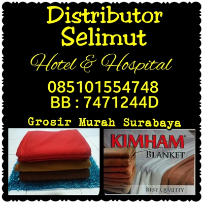 Grosir selimut hotel.Terbuat dari bahan flanel. Ukuran 150 x 200 cm, Tersedia berbagai warna. Biasa digunakan untuk di hotel, villa, mess. Menerima pemesanan dan pengiriman barang ke luar kota atau luar pulau, transportasi mobil, kereta api dan kapal laut. Hub bagian MARKETING - Holi dan Mira, HP : 085101554748, 0822 3030 8018, Pin BB :D52C5ED5, Whats app : 08993959494, Line id : Holianto