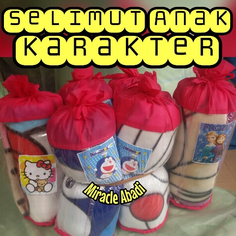 Grosir selimut tabung. Ukuran 120 x 150 cm. Terbuat dari bahan Flanel halus. ada banyak motif kartun anak-anak seperti : Barbie, Princess, Spiderman, Cars, Little Twin, Mickey Mouse, Winnie The Pooh, Doraemon, Hello Kitty, Sponge bob, Angry bird, Shaun The Seep, Ben10. Menerima pemesanan dan pengiriman barang ke luar kota atau luar pulau, transportasi mobil, kereta api dan kapal laut.
